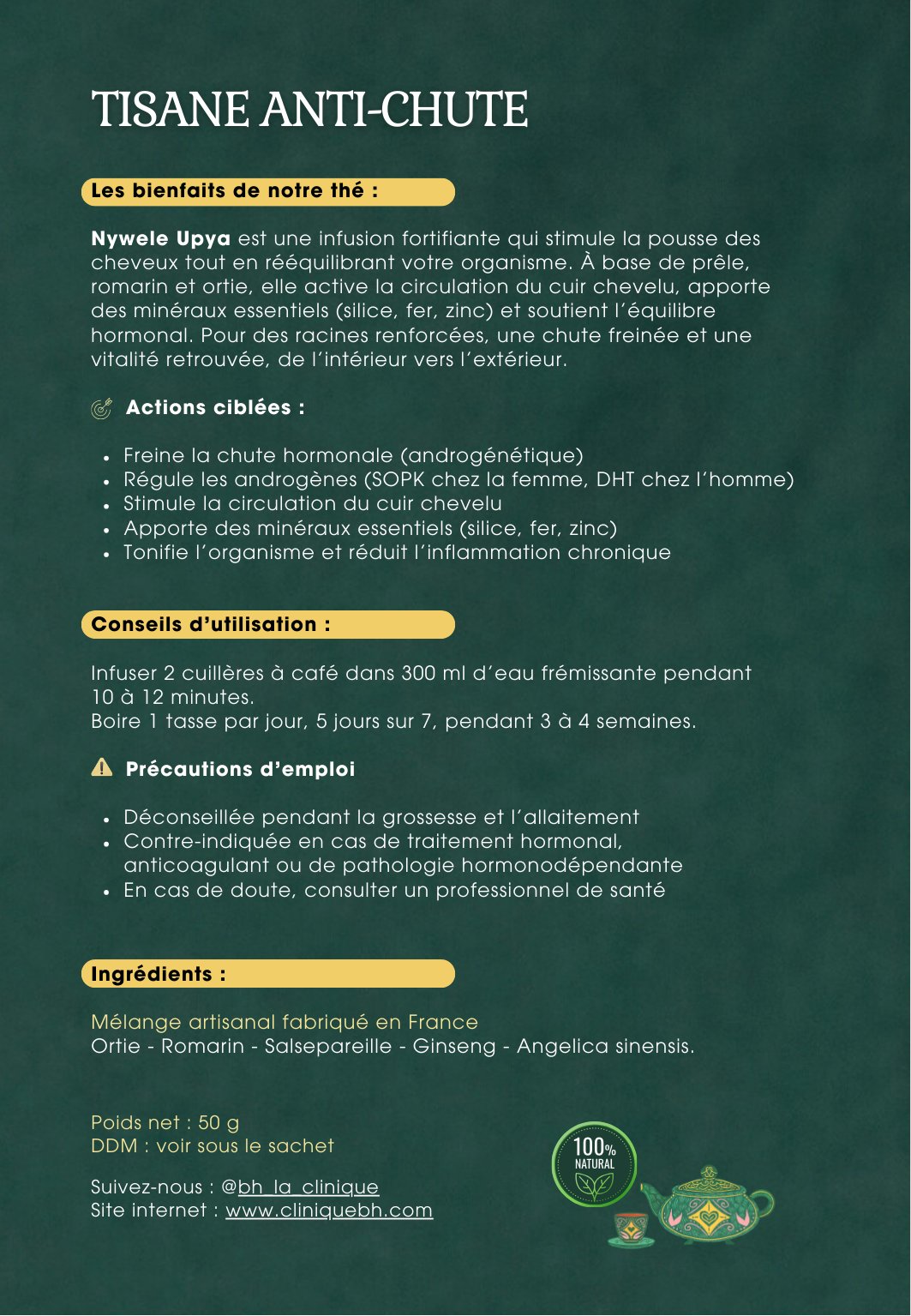Des tisanes bien-êtres et anti-chute uniques, qui comblent les carences, fortifient les racines, stimule la pousse, purifient l'organisme et soutiennent l'équilibre intérieur. Chaque infusion est une renouer avec la nature, la foi et l'harmonie du corps.